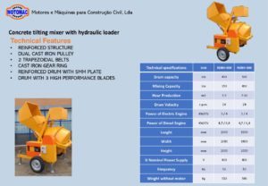 Concrete tilting mixer with hydraulic loader